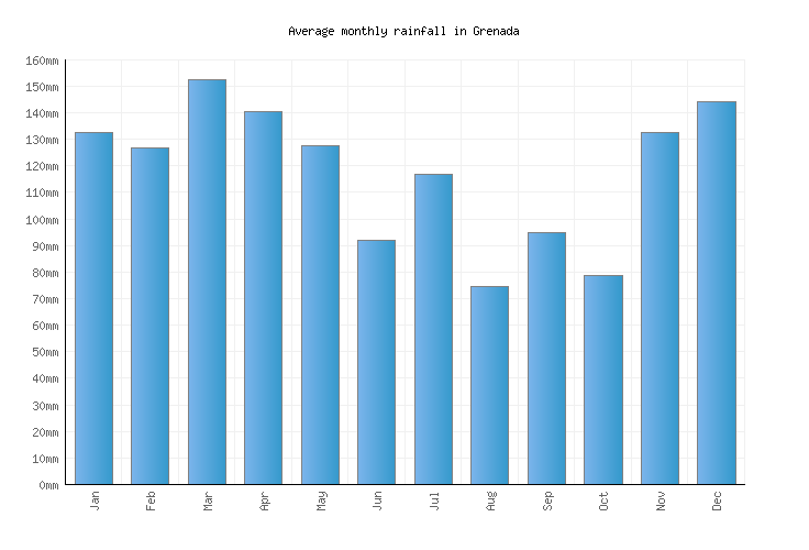 Grenada is very humid and on average, humidity levels range from 69% to 72% throughout the year. There are days that are very windy, however on average the wind speed is about 16 km/hour.